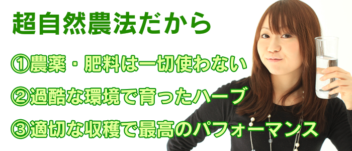 自然を壊さないことが基本の「超自然農法」では、育ってきたメディカルハーブを乱獲することもありません。「乱獲」することはすなわち、自然を壊すことにつながるからです。